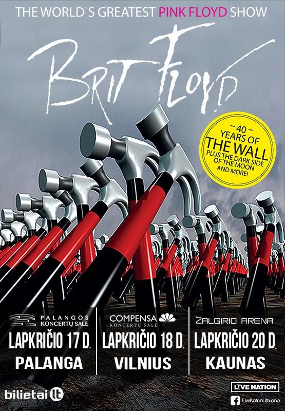 Įspūdingi vaizdo ir apšvietimo efektai, keliolikos muzikantų grupė ir daugybė kelis dešimtmečius žinomų legendinės britų grupės „Pink Floyd“ dainų. Visa tai - net trijuose šalies miestuose: lapkričio 17 d. Palangos koncertų salėje, lapkričio 18 d. „Compensa“ koncertų salėje Vilniuje ir lapkričio 20 d. „Žalgirio“ arenoje Kaune. Čia naujo pasaulinio turo koncertą surengs geriausiu pasaulyje pripažįstamas „Pink Floyd“ muzikos šou „Brit Floyd“, į kurį jau keturis kartus iš eilės Lietuvoje buvo išgraibstyti visi bilietai. Šį rudenį„pinkų“ muzikos gerbėjai net tris kartus galės pamatyti naują šou, pristatomą pasaulinėse gastrolėse, kuris yra skirtas prieš 40 metų išleistam klasikiniam „Pink Floyd“ albumui „The Wall“.