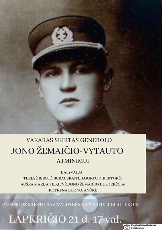 Lapkričio 21 d. 17 val. bibliotekoje rengiamas vakaras, skirtas generolo Jono Žemaičio-Vytauto atminimui. Šiame renginyje dalyvaus: Lietuvos genocido ir rezistencijos tyrimo centro direktorė Teresė Birutė Burauskaitė, Aušra Marija Vilkienė, Jono Žemaičio dukterėčia ir Kotryna Buono, anūkė.