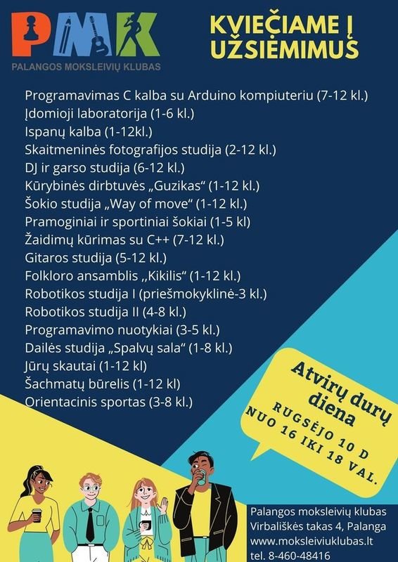 Kviečiame vaikus ir tėvelius į atvirų durų dienos renginį Palangos moksleivių klube. Susipažinsite su skelbiamų būrelių įvairove ir mokytojais pristatančius juos.