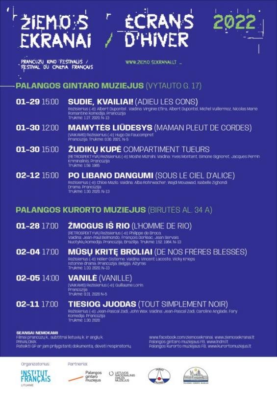 Prancūziškas kinas gali būti visoks: nuo nostalgiškų Simone Signoret, Jean-Paul Belmondo juostų iki šių dienų drąsių jaunųjų kūrėjų bandymų – tą įrodys sausio 28–vasario 13 dienomis jau 17-ąjį kartą vyksiantis prancūzų kino festivalis „Žiemos ekranai“, drąsiai atnaujinęs ne tik savo įvaizdį, bet kartu išsigryninęs ir savo tikslą: kino teatruose pristatyti įdomiausių pradedančių prancūzų kūrėjų filmus, kuriuose – svarbiausias šių dienų aktualijas įvaizdinančios temos.