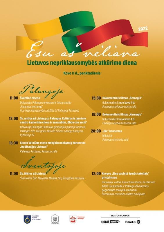 12.00 val. Šv. Mišios už Lietuvą su Palangos kultūros ir jaunimo centro kameriniu choru ir ansambliu „Oboe con archi"