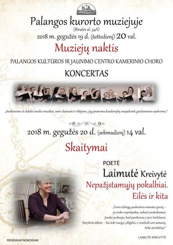 Europos muziejų naktį – gegužės 19 d. miesto muziejuje skambės Palangos kultūros ir jaunimo centro choro (vad. E. Jucevičius) atliekama muzika.