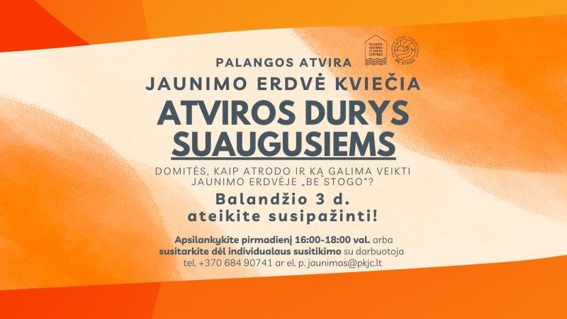 Galimybė jaunimo tėvams, globėjams ir kitiems suaugusiems ateiti į Palangos jaunimo erdvę, susitikti ir susipažinti, pabendrauti su jaunimo darbuotoja Asta