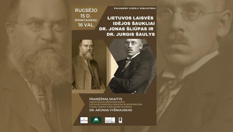 Pranešimą Lietuvos laisvės idėjos šaukliai dr. Jonas Šliūpas ir dr. Jurgis Šaulys skaitys Jurgio Šaulio draugijos narys, Lietuvos gyventojų genocido ir Rezistencijos tyrimų centro vyriausiasis istorikas Dr. Arūnas Vyšniauskas.