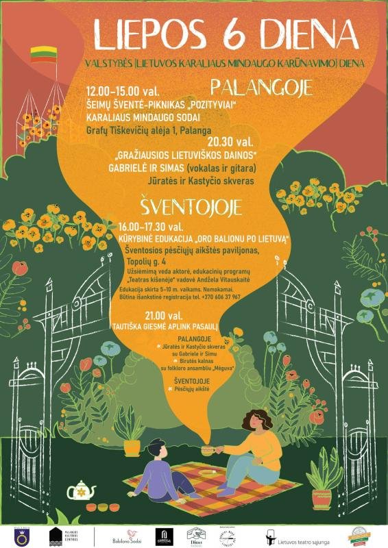 Lietuvos karaliaus Mindaugo karūnavimo dienos proga Palangoje tradiciškai organizuojama šventė-piknikas „Pozityviai“. Lietuvos valstybės kūrėjo Mindaugo tapimas karaliumi buvo savotiškas kelias į Europos karalysčių šeimą. Šiemet šventės dalyviai pievelėje šalia kurhauzo įsitrauks į interaktyvias veiklas ir žaidimus, kartu su karaliumi Mindaugu apsilankys įvairiuose pasaulio miestuose. „Babilono sodai“ pamokys kaip karališkai degustuoti arbatą. Karalaičių augintis dinozauriukas Dino pakvies kartu pažaisti ir sukurti dinozaurų šalį. O karaliaus burtininkas sušuks „Eureka“, kai jam ir vėl pavyks nustebinti mažuosius karalaičius savo eksperimentu. Karaliaus Mindaugo sode galėsite ir kitas riterių pramogas išbandyti. „Mediniai lauko žaidimai“ kvies galvoti, pataikyti, laviruoti ir konstruoti. Vakare, prieš vieningą himno giedojimą, prasidainuosime ir gražiausias lietuviškas dainas prisiminsime kartu su Gabriele ir Simu Jūratės ir Kastyčio skvere.