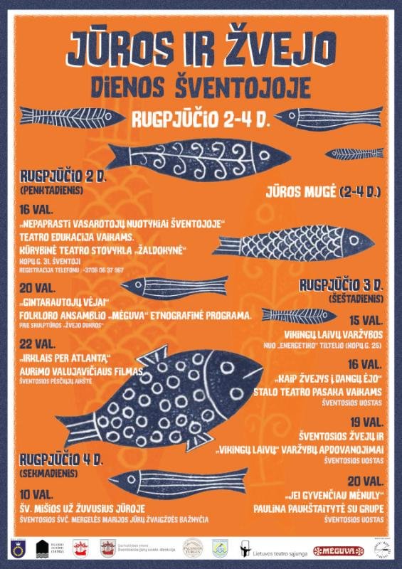 Prie jūros gyvenantys žino, kad jūra – ne tik smėlio pilys ir dailus saulės įdegis. Jūra – tai galinga jėga, kurią reikia gerbti ir su kuria reikia mokėti sugyventi. Jūros ir žvejo dienos Šventojoje penktadienį dedikuoja jūros stichijai. Lietuvos teatro sąjungą kviečia 5-10 metų vaikus sudalyvauti edukacijoje vaikams „Nepaprasti vasarotojų nuotykiai Šventojoje“ (registracija tel. +37060637967).