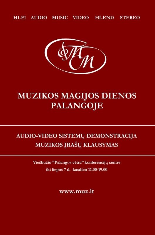 Audio ir video muzikos įrašų klausymas, stereo sistemų, atkuriančių kokybišką garsą, artimą natūraliam, demonstracija kiekvieną dieną nuo 11 iki 19 valandos, viešbučio „Palangos vėtra“ konferencijų salėje (S. Daukanto g. 35)