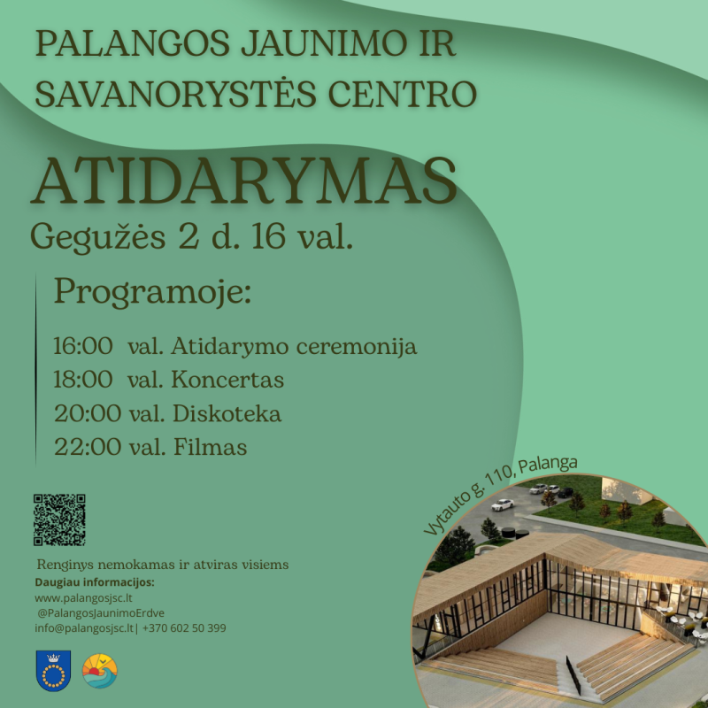 Su džiaugsmu kviečiame visus į ypatingą įvykį – naujojo Palangos jaunimo ir savanorystės centro pastato atidarymą, kuris vyks gegužės 2 d., 16 val.