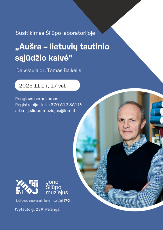Lietuvos nacionalinio muziejaus padalinys Palangos burmistro Jono Šliūpo muziejus lapkričio 14 d. 17 val. kviečia į susitikimą Šliūpo laboratorijoje su Lietuvos istorijos instituto mokslo darbuotoju dr. Tomu Balkeliu. Renginio metu istorikas pristatys paskaitą ir diskusiją „Aušra“ – lietuvių tautinio sąjūdžio kalvė“.