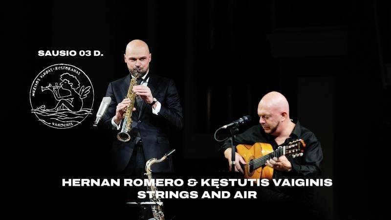 Tai išties ypatingas muzikinis susitikimas tarp dviejų pasaulinio lygio atlikėjų – gitaros meistro ir dainininko Hernano Romero (JAV) bei saksofono virtuozo Kęstučio Vaiginio (Lietuva). Jų projektas „Strings and Air“ – tai kelionė per muzikos žanrus, kultūras ir emocijas, kur susipina flamenko karštis, džiazo improvizacija, klasikos elegancija ir šiuolaikinės muzikos ekspresija.