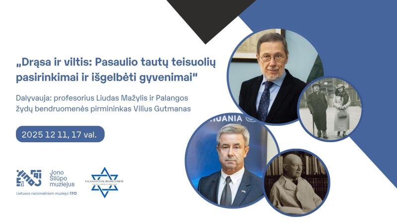 Palangos žydų bendruomenė kartu su Lietuvos nacionalinio muziejaus padaliniu - Palangos burmistro Jono Šliūpo muziejumi - gruodžio 11 d. 17 val. kviečia į susitikimą „Drąsa ir viltis: Pasaulio tautų teisuolių pasirinkimai ir išgelbėti gyvenimai“. Renginio metu Europos Parlamento narys, profesorius Liudas Mažylis dalinsis įžvalgomis apie žydų gelbėtojų ryžtą Antrojo pasaulinio karo metais, istorinių dokumentų ir atminimo svarbą šiandien. Kartu dalyvaus Palangos žydų bendruomenės pirmininkas Vilius Gutmanas, kuriam ši tema - asmeniškai artima ir gyva. Tai vakaras, skirtas ne tik istorijai, bet ir klausimui, kurį svarbu išgirsti kiekvienam iš mūsų: ar ir šiandien, ištikus išbandymui, pasirinktume drąsą?