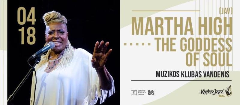 Didžiausias Lietuvos festivalis „Kaunas Jazz“ skelbia džiugią žinią ne tik Kauno, bet ir kitų miestų gyventojams. Balandį keturių koncertų turą Lietuvoje surengs garsi amerikiečių dainininkė, soulo muzikos veteranė Martha High. Jos pasirodymai įvyks Jurbarke, Kaune, Palangoje ir Joniškyje.