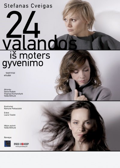 „24 valandos iš moters gyvenimo“ – tai tikros, stiprios, fatališkos meilės besiilginčių trijų moterų istorijos. Valiūkiška Irenė, paslaptingoji Misis K. ir niekieno nemylėta Leporelė. Trys istorijos, sklidinos aistros, negailestingos lemties posūkių, skaudžios ironijos, šelmiško juoko...