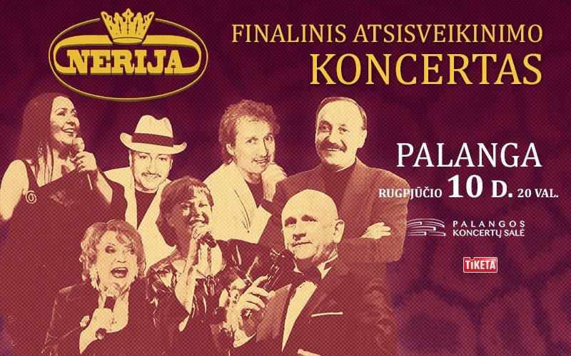 Lietuvos estrados gyva legenda ansamblis „Nerija“ savo grandiozinį atsisveikinimo turą užbaigia finaliniu pasirodymu Palangos koncertų salėje rugpjūčio 10 dieną.