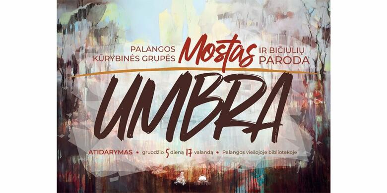 Gruodžio 5 d. (penktadienį) 17 val. Palangos kūrybinė grupė „Mostas“ kviečia į parodos atidarymą Palangos viešosios bibliotekos parodų salėje. Šiemet Palangos kūrybinė grupė mini 32-ąjį gimtadienį. Kaip ir kasmet dailininkai ne tik pristatys savo darbus, bet ir pasidalins kūrybinio proceso įžvalgomis, atskleis, kaip vienas seniausių pigmentų tapo jų įkvėpimu. Iš lotynų kalbos umbra reiškia šešėlį. Būtent šis - šviesos ir šešėlio santykis šiemet tampa mosti...