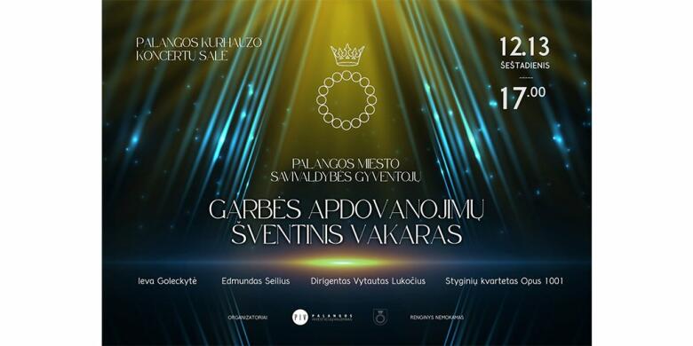 Palangos miesto savivaldybės gyventojų garbės apdovanojimų vakaras – iškilminga ir širdį šildanti šventė, skirta žmonėms, kurie savo darbu, atsidavimu, kūryba ir idėjomis ženkliai prisideda prie Palangos miesto gerovės, istorijos puoselėjimo ir bendruomenės stiprinimo. Tai – ypatingas vakaras, kai susitelkiame pagerbti tuos, kurie savo veikla įkvepia, kuria ir palieka ryškų pėdsaką mūsų kurorto gyvenime. Renginys vyks gruodžio 13 d., šeštadienį, 17 val., i...